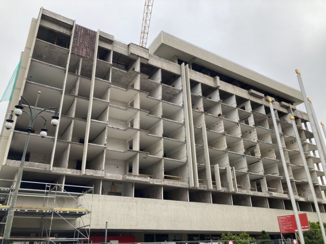 ukázkám středoevropské brutalistní architektury. Probíhající